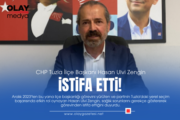 Cumhuriyet Halk Partisi (CHP) Tuzla İlçe Örgütü'nde önemli bir ayrılık yaşandı. Aralık 2023'ten bu yana ilçe başkanlığı görevini yürüten ve partinin Tuzla'daki yerel seçim başarısında etkin rol oynayan Hasan Ulvi Zengin, sağlık sorunlarını gerekçe göstererek görevinden istifa ettiğini duyurdu.