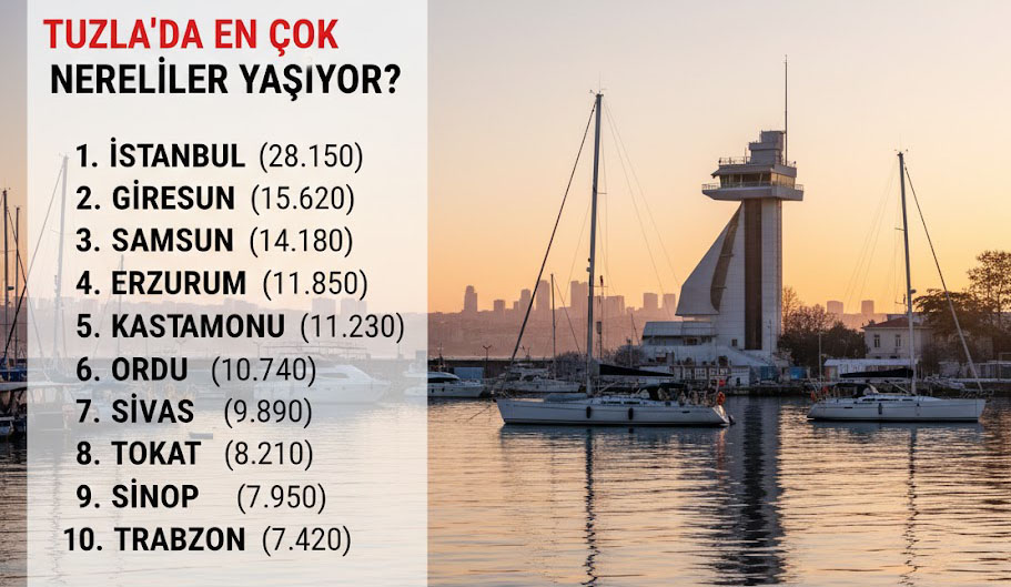 TÜİK'in son verilerine göre, Tuzla'da İstanbul kütüğüne kayıtlı olanlardan sonra en büyük nüfus payını Giresunlular alıyor.