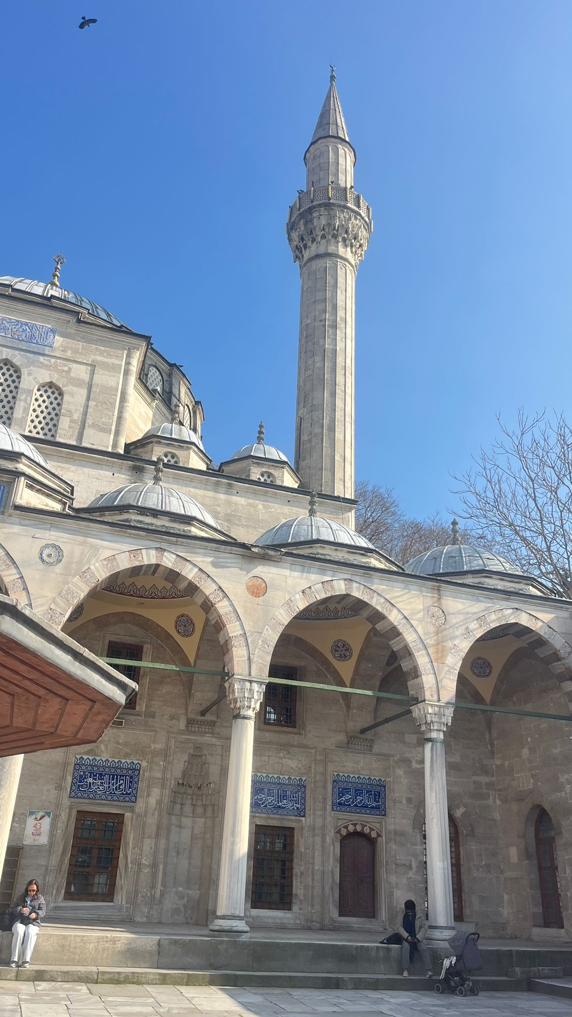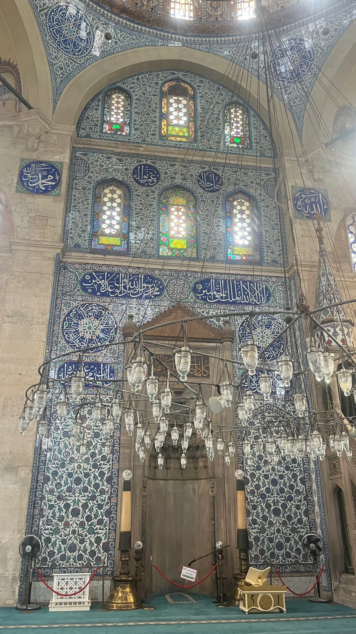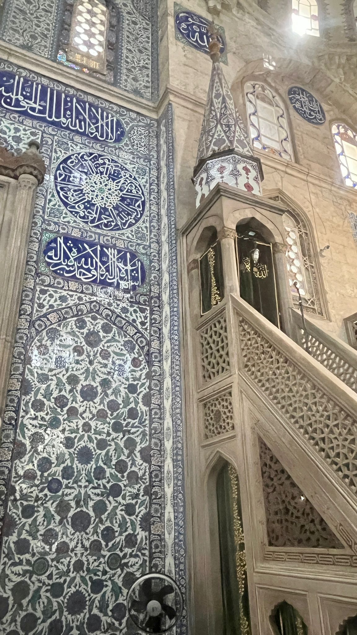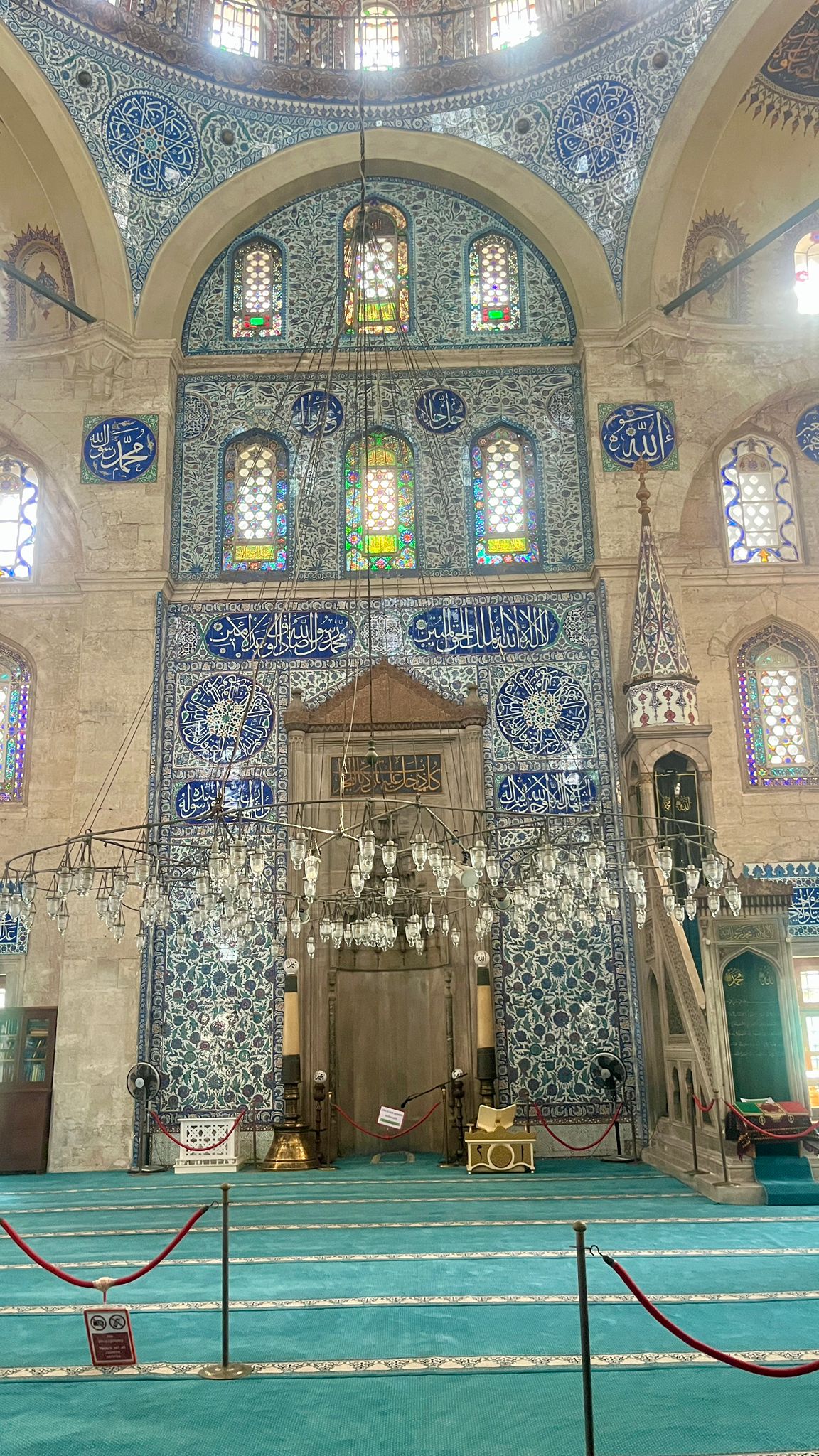 Adeta hakiki bir mücevher dükkânına girmiş gibi; her köşesi ince işçilikle parlayan, her detayı ayrı bir zarafet taşıyan eser.. İznik çinilerinin ve orijinal kalem işlerinin en zarif örnekleri kullanılmış, lacivertin ve turkuazın renklerinin buluştuğu, lale ve zarif yaprak motifleriyle ışıl ışıl parlayan İznik çinilerine bakıyorum; her biri içimde ışıl ışıl parlıyor sanki . . Ayrıca minaresi ve şerefesi, zarif süslemeleri ve incelikle işlenmiş korkuluklarıyla adeta göz kamaştıran bir güzellik sunar.