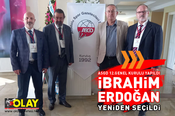 Anadolu Spor Gazetecileri Derneği (ASGD) 12. Olağan Büyük Genel Kurulunda, İbrahim Erdoğan bir kez daha başkanlığa seçildi. Bursa'nın Gemlik ilçesinde Atamer Doğa Resort Hotel’de yapılan genel kurula, CHP İzmir Milletvekili Atilla Sertel, CHP Genel Başkan Yardımcısı Seyit Torun, ev sahibi Gemlik Belediye Başkanı Mehmet Uğur Sertaslan, CHP İl Başkanı İsmet Karaca, İYİ Parti İl Başkanı Selçuk Türkoğlu, Nilüfer Belediye Başkanı Turgay Erdem, Nilüfer Belediyesi eski Başkanı ve Büyükşehir Belediye Başkan Adayı Mustafa Bozbey, Kayseri Gazeteciler Cemiyeti Başkanı Metin Kösedağ ve Kocaeli Gazeteciler Cemiyeti eski Başkanı Çetin Gürol ile birlikte Anadolu’nun dört bir yanından gelen gazetecilerin katılım gösterdiği genel kurulda, bir de Anadolu Medya Buluşması programı gerçekleştirildi ve bu kapsama Türk Dünyası, Atatürk ve Medya konulu söyleşi yapıldı.
