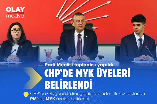 CHP'de 21’inci Olağanüstü Kurultay’da Parti Meclisi (PM) üyelerinin belli olmasının ardından ilk PM toplantısı, parti genel merkezinde Genel Başkanı Özgür Özel'in başkanlığında saat 12.00'de toplandı. Toplantıda da CHP lideri Özel’in yanına Parti Meclisi’nin en genç ve yeni üyeleri Berkay Gezgin ve Berna Özgül oturdu. Basına kapalı toplantıda parti içindeki yeni görevlendirmeler ele alındı. Merkezi Yönetim Kurulu üyeleri de burada belirlendi. MYK listesi şu isimlerden oluştu: