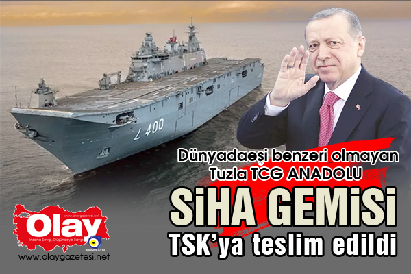 Dünyanın ilk SİHA gemisi TCG Anadolu, Cumhurbaşkanı Erdoğan'ın katıldığı törenle Tuzla'da TSK'ya teslim edildi. Erdoğan, "Gemimizi Sirkeci'de halkın ziyaretine açıyoruz." ifadelerini kullandı.
