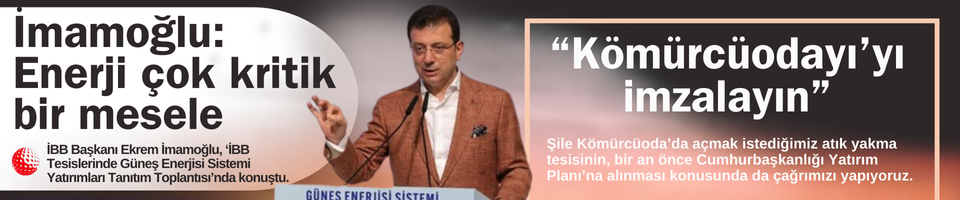 İBB Başkanı Ekrem İmamoğlu, ‘İBB Tesislerinde Güneş Enerjisi Sistemi Yatırımları Tanıtım Toplantısı’nda konuştu. “Enerji meselesi, ülkemiz için çok kritik bir mesele” diyen İmamoğlu, Cumhurbaşkanı Recep Tayyip Erdoğan’a, Şile Kömürcüoda’da açmayı planladıkları çöp gazından enerji üretim tesisini yatırım planına alması çağrısını yineledi. İmamoğlu, “Avrupa'nın bir başka büyük tesisini, en büyüklerinden birini yapmayla ilgili son aşamaya geldiğimizi ve uzun süredir yine Cumhurbaşkanlığı onayını, yatırım planına alınmasını beklediğimizin de altını çizmek istiyorum. Kendi kaynağından enerji üreten, 1,5 milyona yakın insanın yaşadığı bir kentin enerjisini verebilecek güce sahip bir tesisin yapılması adına, uzun süredir beklememizin tek sebebi; bir mürekkep ve bir kalem. İmza atacak ve biz yol yürüyeceğiz. Bu anlamda Şile Kömürcüoda’da açmak istediğimiz atık yakma tesisinin, bir an önce Cumhurbaşkanlığı Yatırım Planı’na alınması konusunda da çağrımızı yapıyoruz. Fırsat bulduğumuz her alanda ve her ortamda bunları hatırlatacağımızı, böylesi bir milli yatırımın, milli bir meselenin hangi saiklerle engellendiği hususunun da sorusunu sorarak, her konuşmamın içine bunu katacağımı buradan belirtmek isterim” dedi.