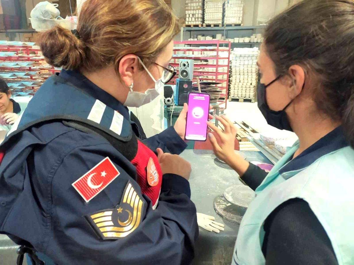 Kocaeli'de jandarma ekipleri, fabrikada çalışan kadınlara Kades uygulamasını tanıtarak, aile içi ve kadına yönelik şiddetle mücadeleye ilişkin bilgilendirmelerde bulundu.