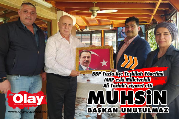 Büyük Birlik Partisi Tuzla İlçe Başkanı Cüneyt Şahin, Teşkilat Başkanı Hakan Ciğer, Kadın Kolları Başkanı Züleyha Deniz, İlçe Sekreteri Şükran Aygün Dörtarka MHP 23.ve 24. Milletvekili Ali Torlak'ı ziyaret ettiler. Ziyarette BBP Genel Başkanı Muhsin Yazıcıoğlu ile ilgili anılarını anlatan Ali Torlak'a BBP Başkanı Cüneyt Şahin liderleri Yazıcıoğlu'nun fotoğrafının bulunduğu tabloyu hediye ettiler.