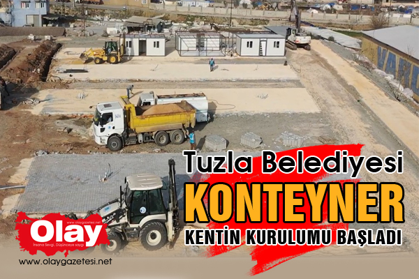 Kahramanmaraş merkezli meydana gelen 7,7 ve 7,6 büyüklüğündeki depremlerin ardından, depremin etkilediği 10 ilde yaraları sarma çalışmaları aralıksız devam ediyor. Yüzyılın felaketinin ardından Tuzla Belediyesi de, tüm imkânlarını seferber ederek deprem bölgelerinde çalışmalarının sürdürüyor. Tuzla Belediye Başkanı Dr. Şadi Yazıcı’nın talimatları ile ilk etapta Hatay’ın Kırıkhan ilçesine kurulacak konteyner kentte çalışmalar aralıksız devam ediyor. Zemin ve alt yapı çalışmalarının bitmek üzere olduğu konteyner kent alanında konteynerlerin kurulumu başladı. Konteyner Kente, ilk etapta 21 metrekare büyüklüğünde 150 konteyner konulacak. Konteyner kentin içerisinde 1 adet sosyal alan, 1 adet çocuk parkı yer alacak.