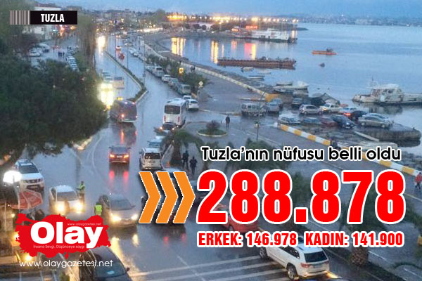 Türkiye İstatistik Kurumu (TÜİK) 2022 yılına ait Adrese Dayalı Nüfus Kayıt Sistemi Sonuçları’nı açıkladı. Buna göre Tuzla’nın nüfusu 2022 yılına göre 288.878 olarak belirlendi. Bu nüfus, 146.978 erkek ve 141.900 kadından oluşuyor. Yüzde olarak ise: %50.88 erkek, %49,12 kadın olarak açıklandı.