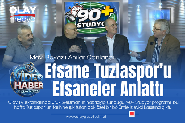 Olay TV ekranlarında Ufuk Gersman’ın hazırlayıp sunduğu "90+ Stüdyo" programı, bu hafta Tuzlaspor’un tarihine ışık tutan çok özel bir bölümle izleyici karşısına çıktı. Programın konukları; Tuzla Postane Mahallesi Muhtarı Mustafa Kaçar, Tuzlaspor’un efsane futbolcularından Necat Çeker ve yine kulübün eski futbolcularından Aslan Boyluoğlu oldu.